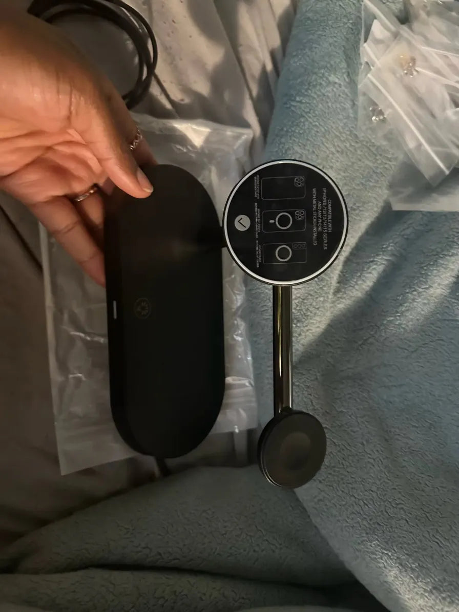 "Wow, best purchase ever! Charges my iPhone, Apple Watch, and AirPods all at once – no more tangled cables. The magnetic feature is solid – no more worries about my phone slipping. Love having everything in one spot, super neat!💯🔥"
